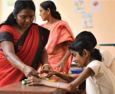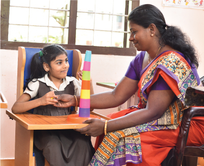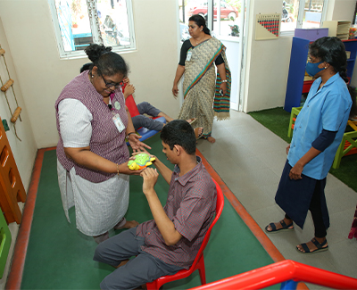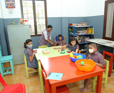 • Training sessions are given to improve their activities of daily living, daily basic skills, communication and academics.