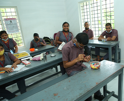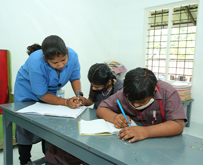 • Kerala state syllabus SCERT is being followed to pursue studies. Teachers train them to read and write alphabets and numbers, to identify pictures and also exhibit their creative abilities in the fileds of computer, drawing, painting, dancing and singing.