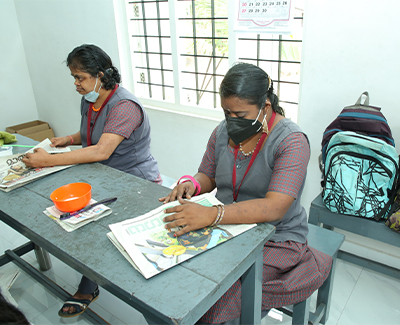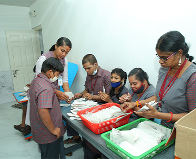 Apart from academics, training is also given to make medicine covers, candles, greeting cards, paper bags & covers, handicrafts, cloth bags & mats etc. We supply these to various hospitals, supermarkets & shops. Profit out of selling these items is being distributed among children so as to create a sense of self respect.